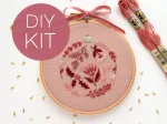 5” Christmas Ornament embroidery kit is a festive DIY craft to enjoy this holiday season! This pattern features a delightful magenta color palette, holiday blooms and a variety of stitches.
